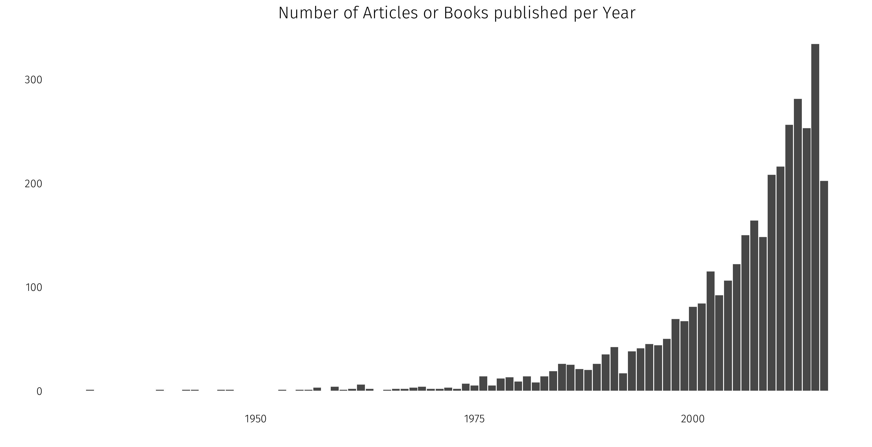 ggtitle("Number of Articles or Books published per Year") +