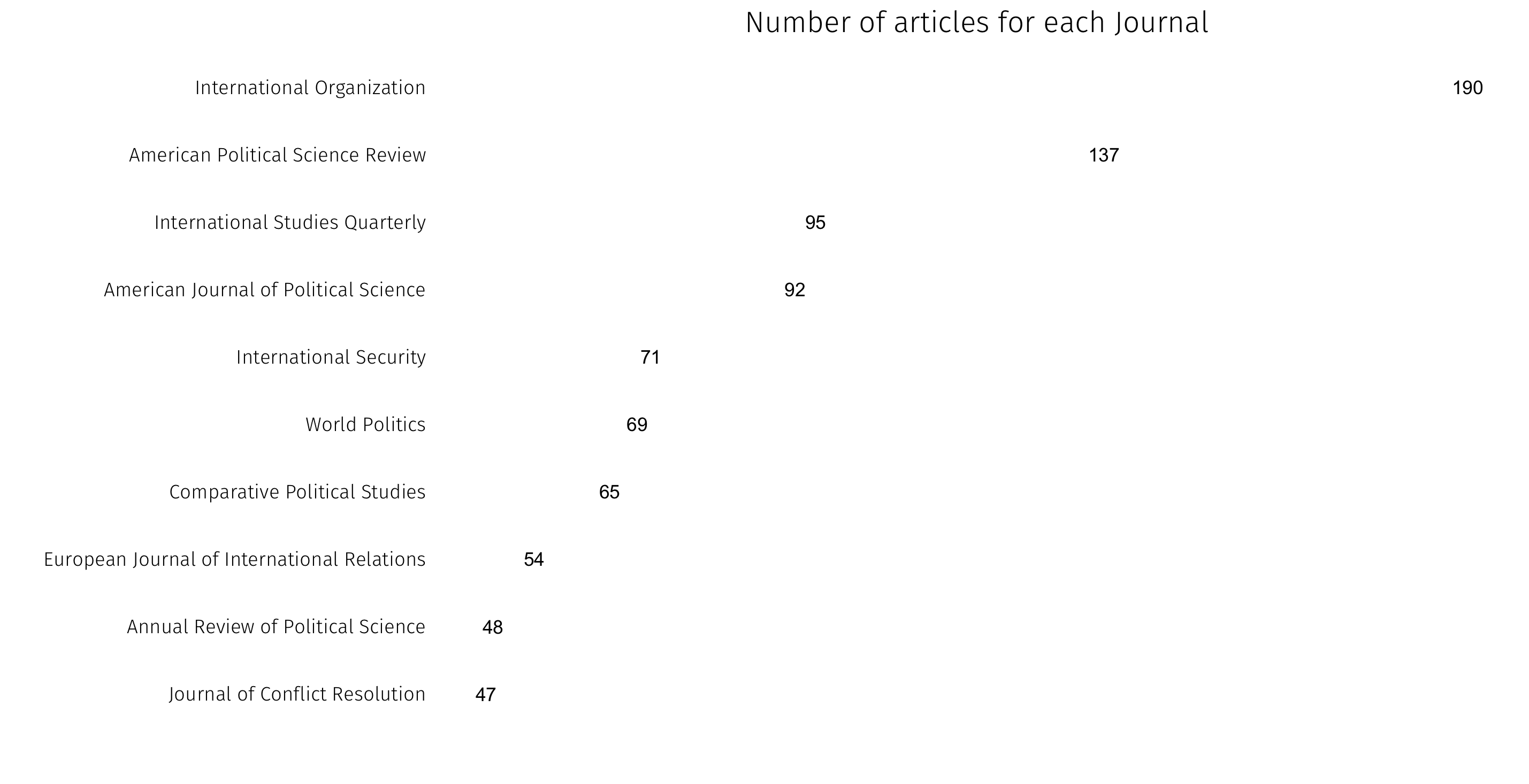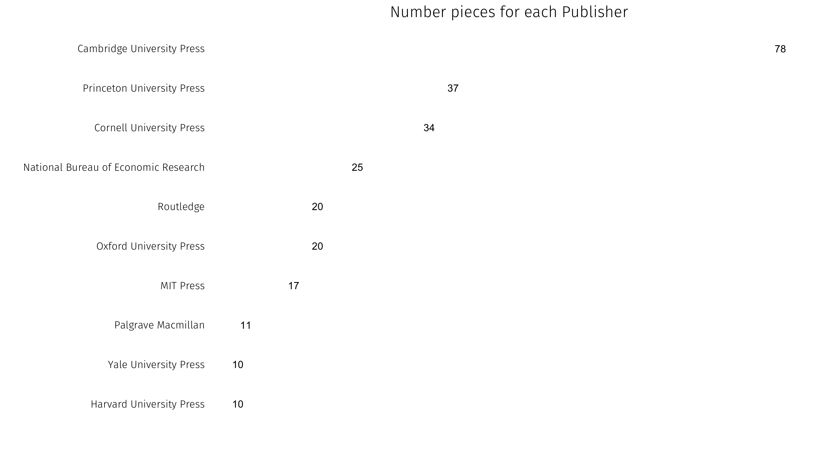 We can also look at popular publications — first by journal for articles, then by press for books: