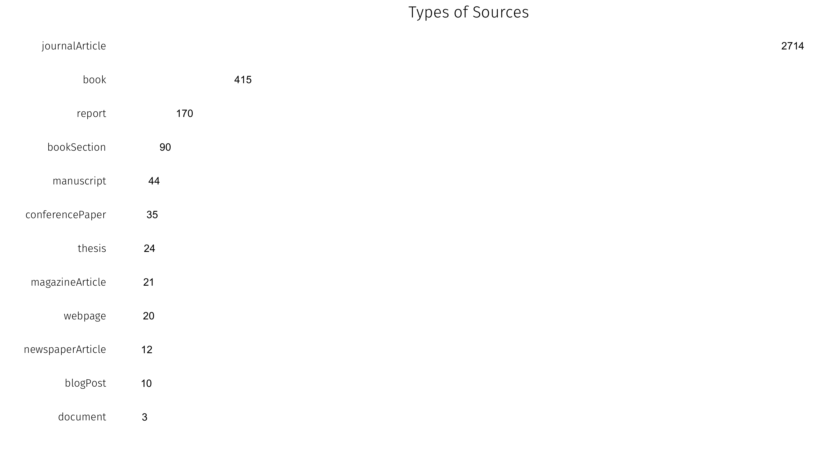I have spent a long time in school and accumulated lots of references as a result. I keep them all fairly organized in Zotero, which lets you export your library as a .csv file — so it wasn’t hard to read into R and do some basic analysis and visualization.