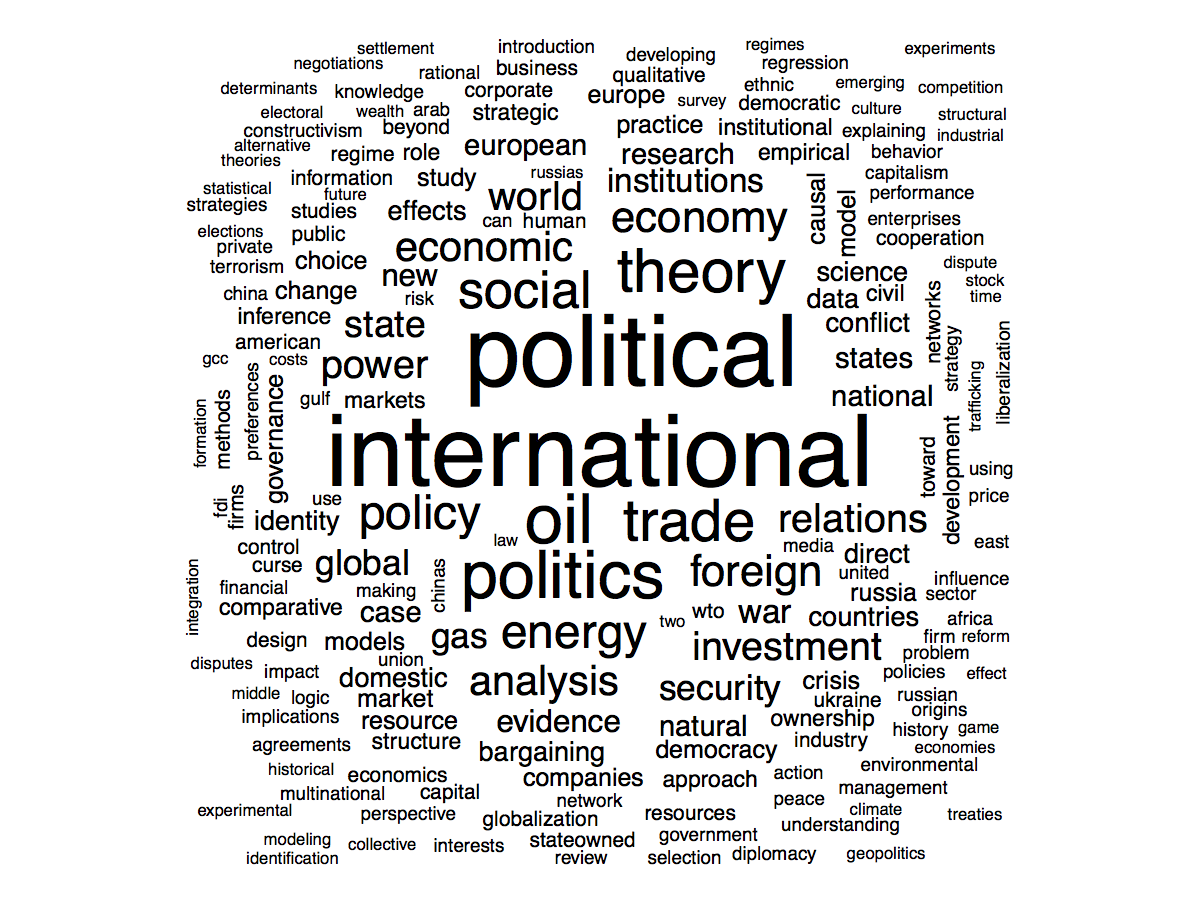 Lots of political economy, lots of international relations, some methodology.
