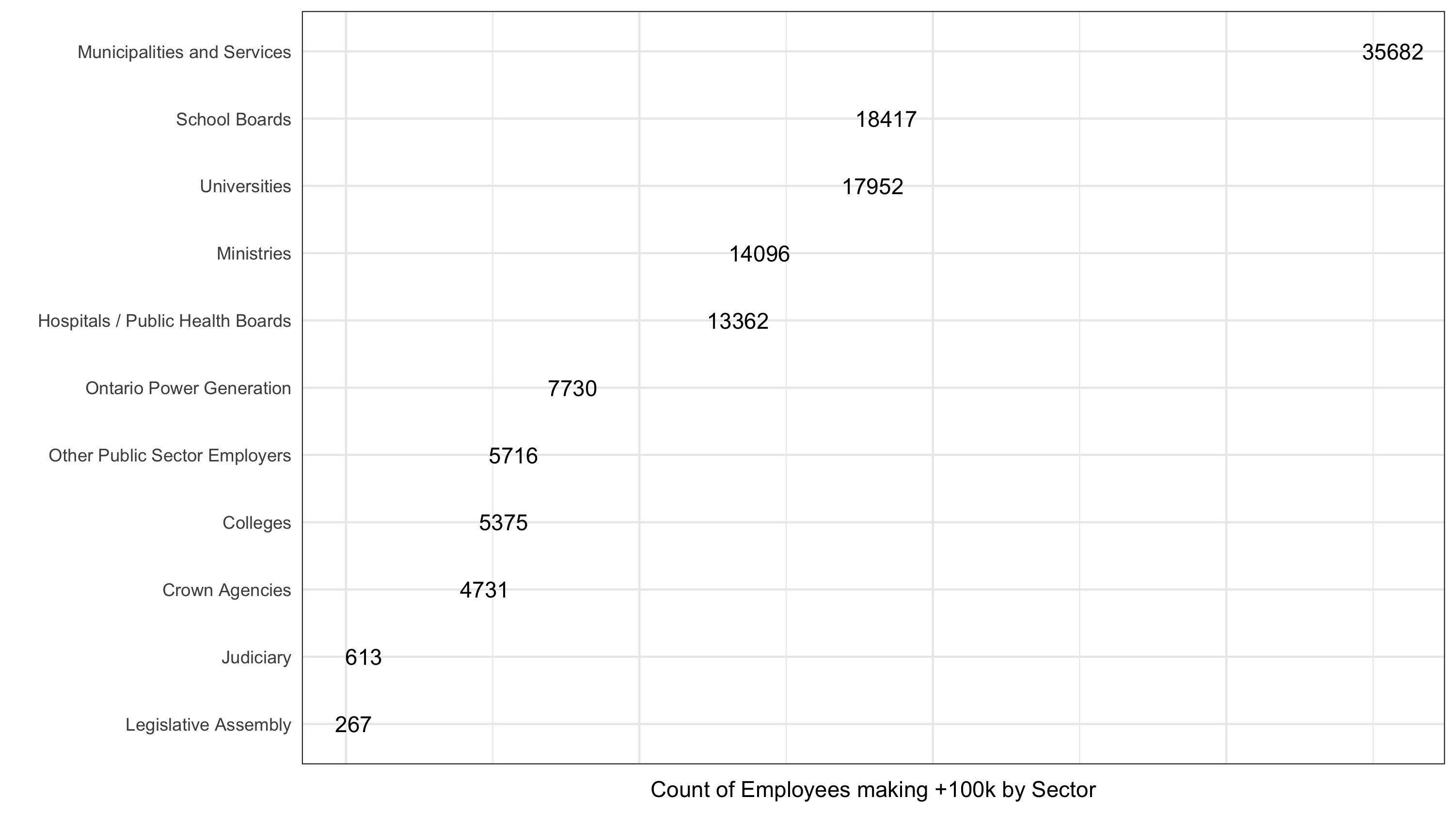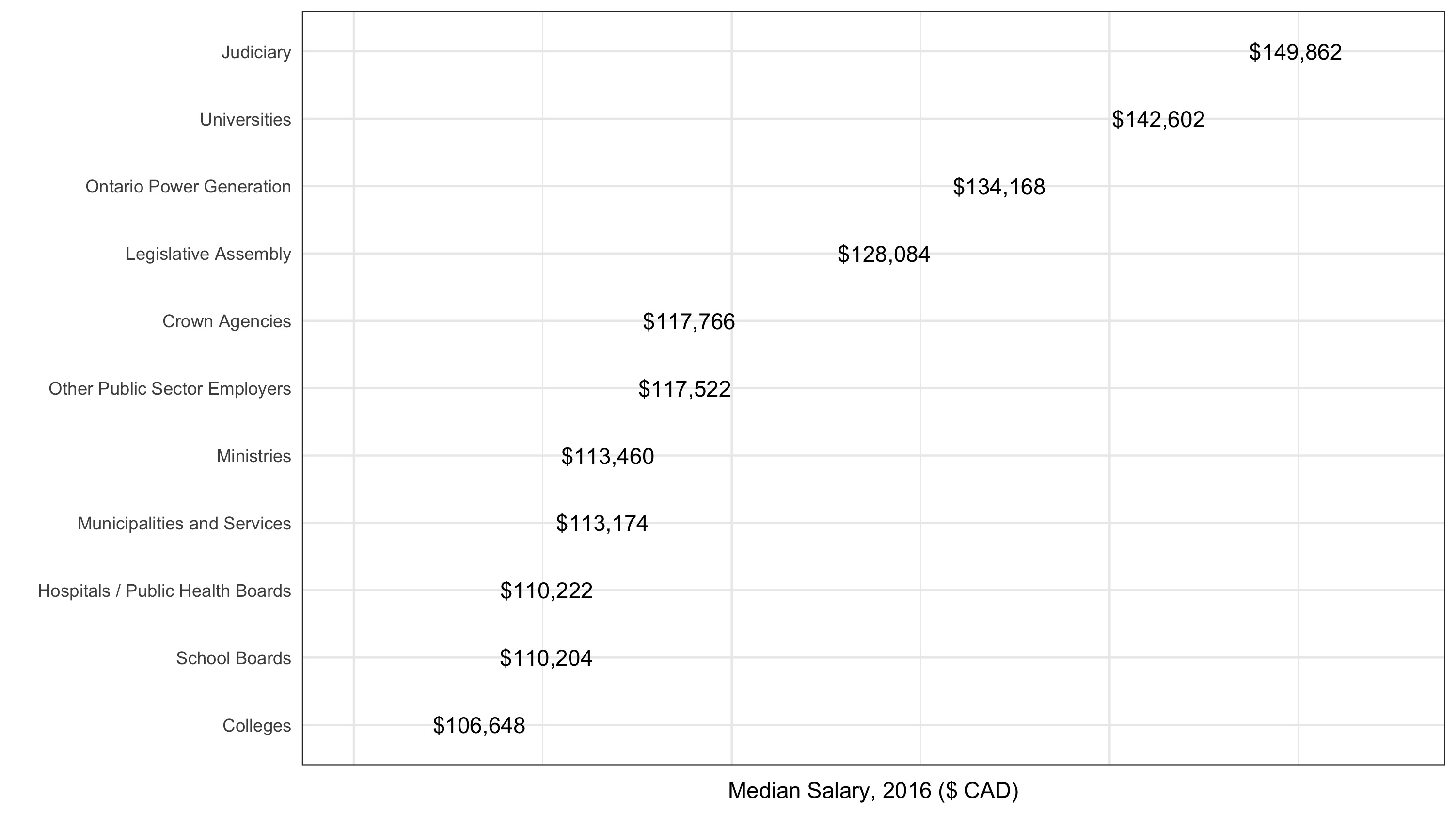 As part of Ontario’s Open Data Initiative, the province releases a salary disclosure dataset every year covering all public sector employees who make over $100k. They have prominent links to a .csv download — I figure they want people to explore it. So I did.